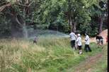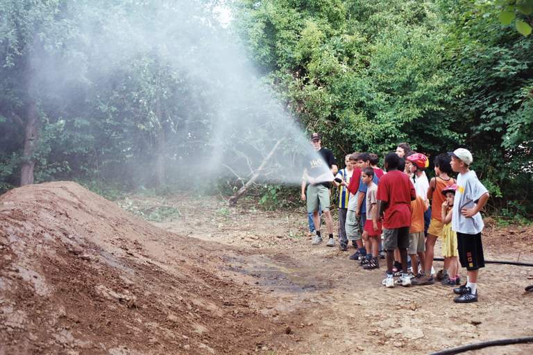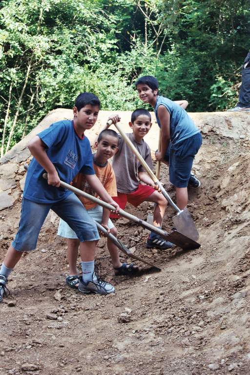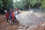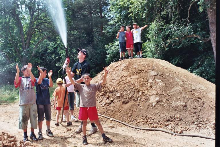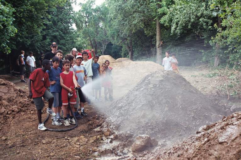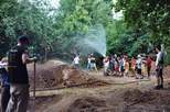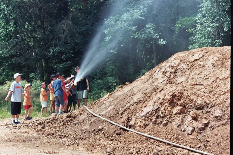 und Jugendliche durften gemeinsam den staubtrockenen Boden