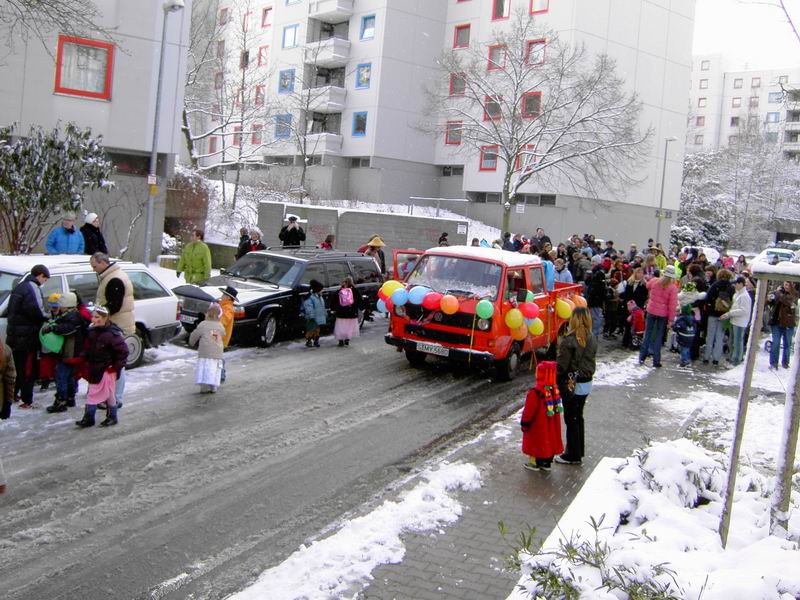 Der Rosenmontag in 2004 wird vielen Kindern und Eltern in schöner Erinnerung bleiben. Da gab es den ersten gemeinsamen Kinderfaschingsumzug Lauchhau-Lauchäcker. Dieser unvergessliche Umzug wurde von der neuen Mitarbeiterin für Jugend und soziale Stadtteilarbeit Sabine Silezin in Kooperation mit der Gemeinwesenarbeit Lauchhau- Lauchäcker, den KITAs des Wohngebietes, den Jugendsachbearbeitern der Polizei und dem Bürgerforum Lauchhau-Lauchäcker e.V. organisiert und durchgeführt. Wir wollen an dieser Stelle allen an Organisation und Durchführung beteiligten, aber auch den vielen KuchenspenderInnen großen Dank aussprechen mit einem lauten