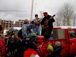 ... Umzug seinen nächsten Halt. Jetzt werden Bonbons an ... ... verteilt. Zum Werfen war uns dann der Boden doch zu dreckig und matschig.  .Dann gab es noch eine  tolle Gesangseinlage auf dem Umzugswagen!