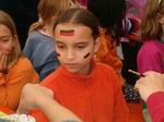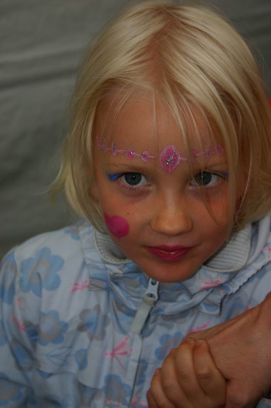 wenig verlegen, aber sehr Stolz auf die schöne Schminke. |