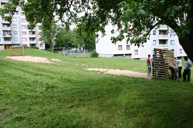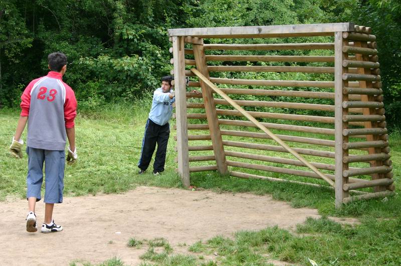 Da die Tore intensiv genutzt werden, musste jetzt mal der ein oder andere Balken nachgebessert werden. Dazu gab es die folgende Toraktion.