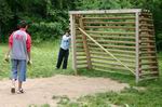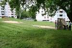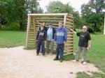 Die Wiese hat leider auch etwas gelitten.  So - Tore wieder in Ordnung. Dafür garantiert schon allein das handwerkliche Können von Hans-Rüdiger Wolff ganz rechts im Bild