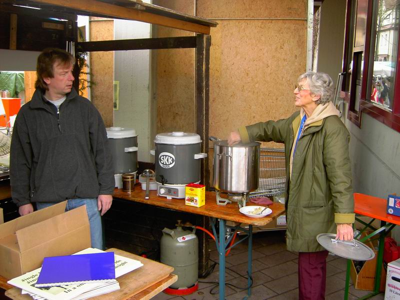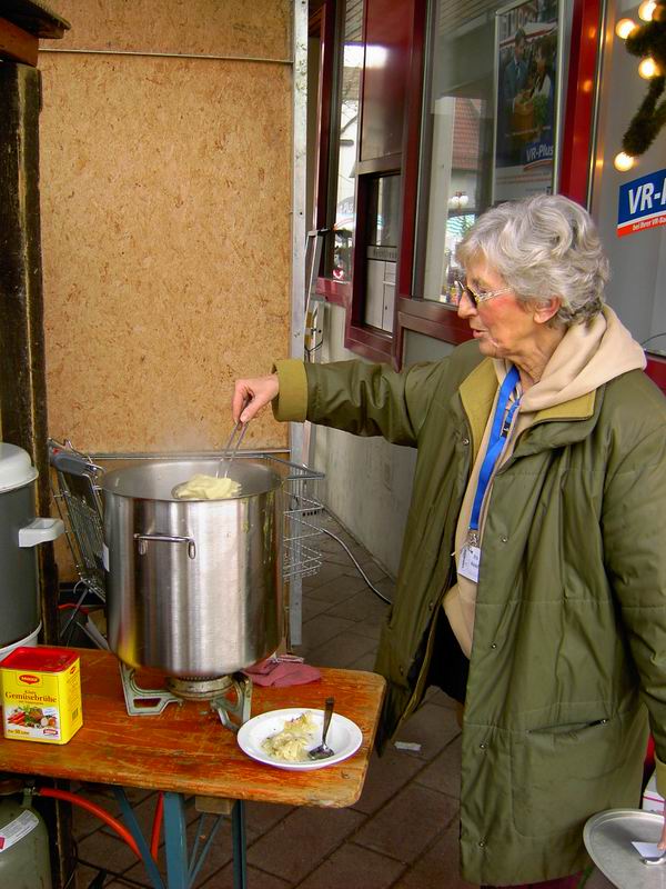 Der Sonntag beginnt mit dem Wiedereinrichten der beiden Stände. Maultaschen, Kinder- punsch und Glühwein werden geheizt.  Für manchen Aufbauer ein warmes Frühstück