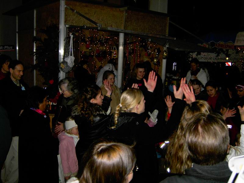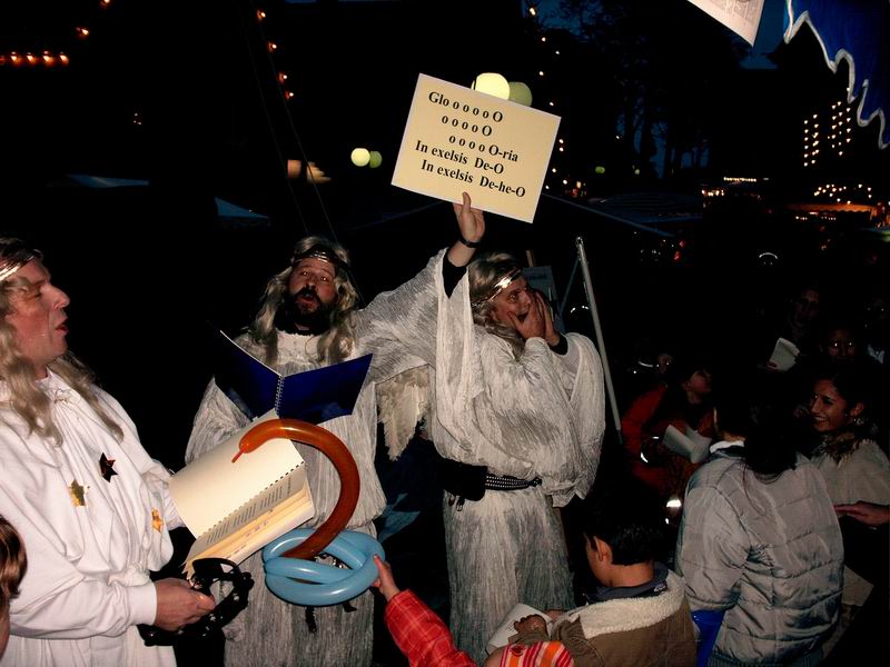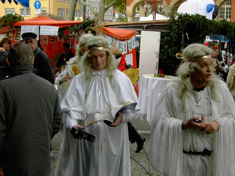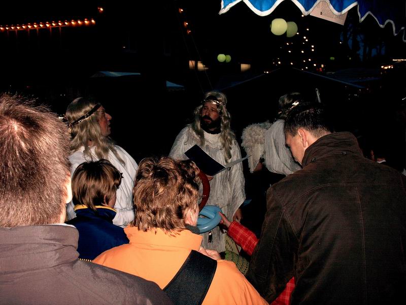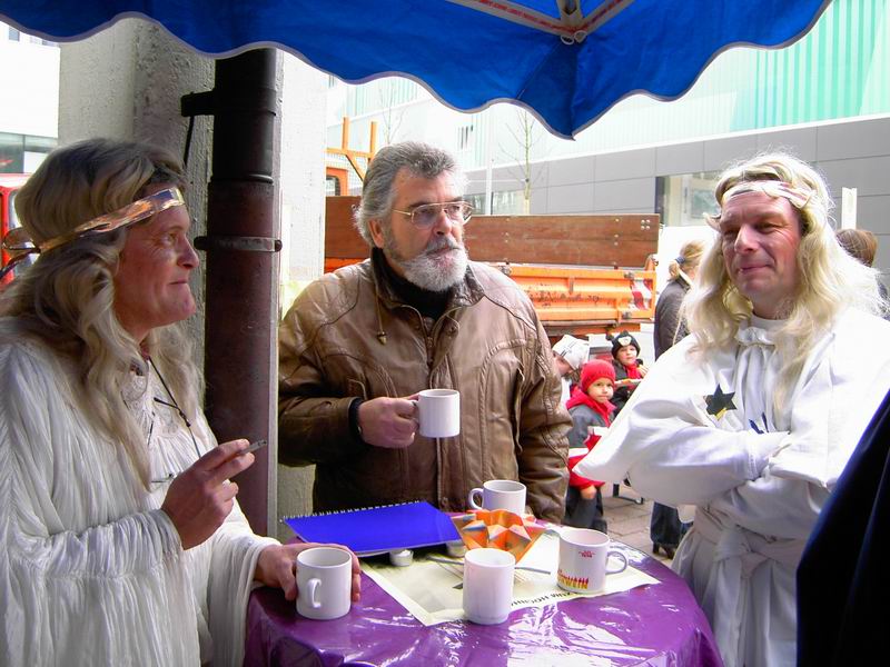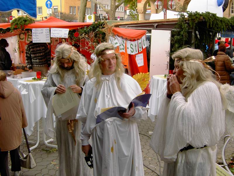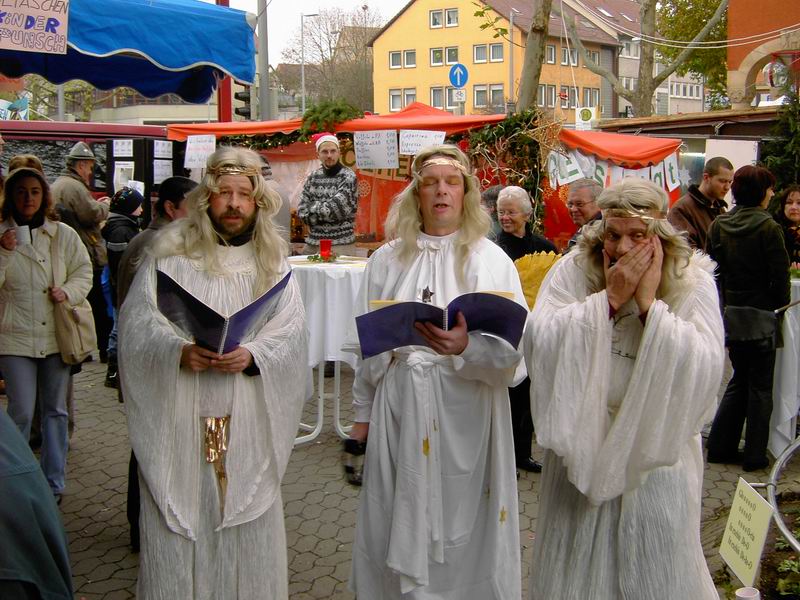Nachdem der Stand wieder in Betrieb ist, verwandeln sich drei der Helfer wieder ... ... auf ganz wundersame Weise. In alter frische und mit kaum ge- schwächten Stimmen ... .. legen sich die drei Engel in's Zeug und lassen Himmlische Klänge über den ...