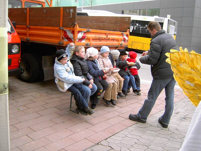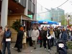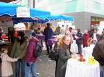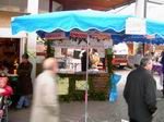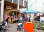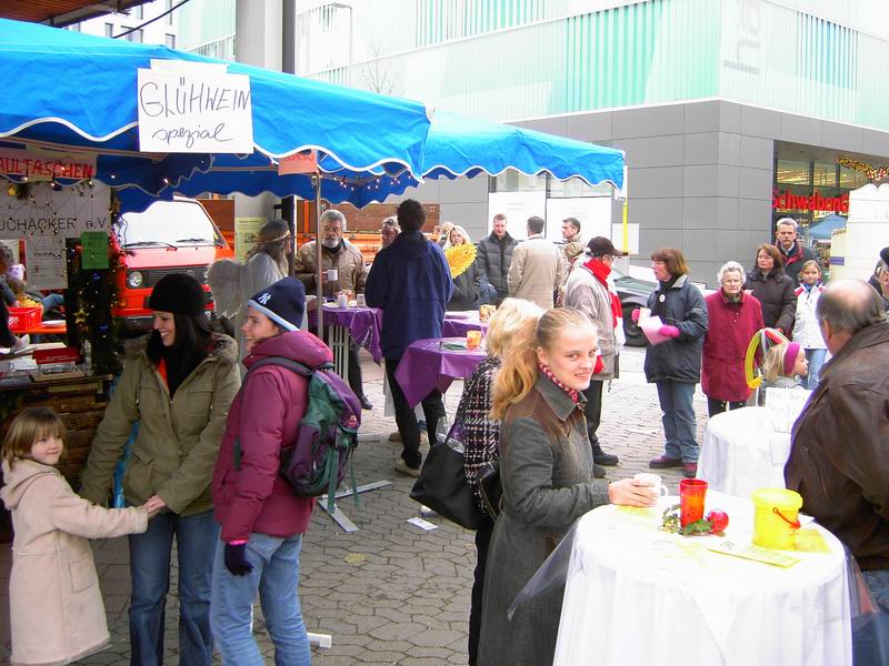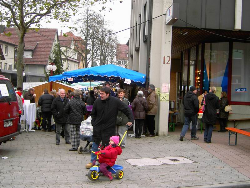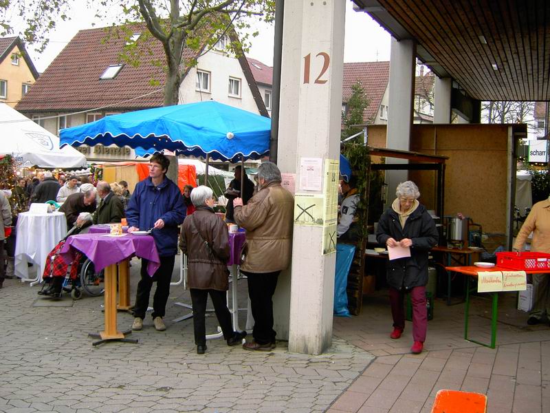 Die Lage der beiden Stände auf dem Rathausplatz ... ... vor der Filderbank ist sehr günstig. Hier gehen viel Leute durch. Blick von der Straße her.