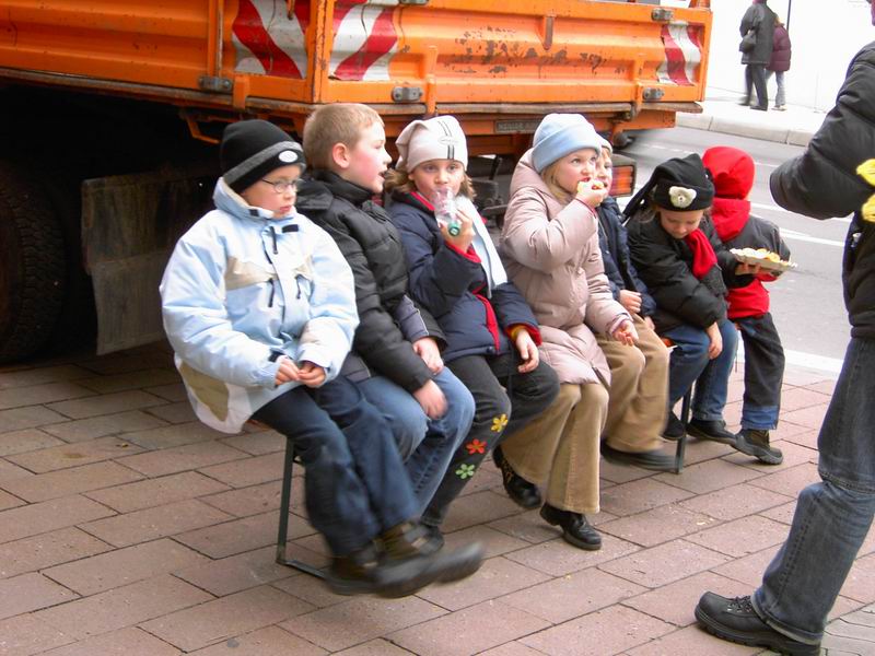 Die Bank hinter unserem Stand bietet ganz anderen Engeln ... ... eine Gelegenheit zum Ausspannen und zum Essen fassen. Die Damen aus dem Lauchhau schmeissen unseren Stand..