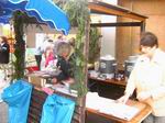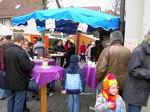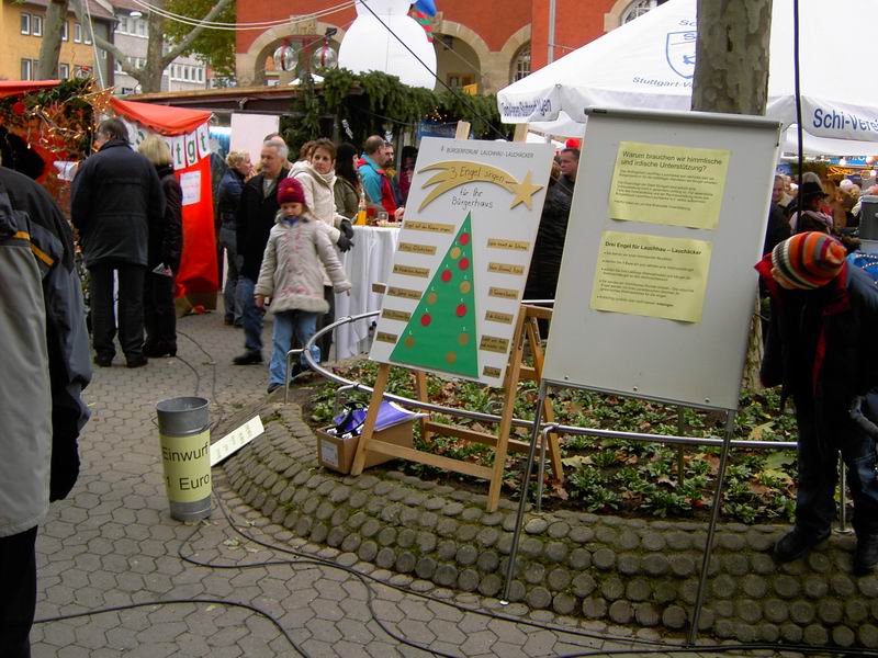 Der Verkaufsstand der KITA Meluner Straße 20. Unser Stand ist gut besucht.. Infotafeln informieren über das Anliegen der singenden Engel.