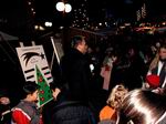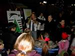 Die Engel helfen den Mitsingenden, wann sie was singen sollten.  Pastor Steffen Kahl von der IBC ist begeistert und hoch erfreut. Da wird es schon mal etwas eng vor den beiden Weihnachtsständen.