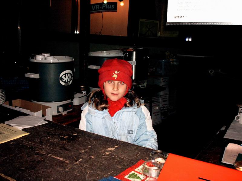Die letzten Lieder für den Sonntag Abend werden angestimmt.  Immer noch finden sich viele Spender für die himmlischen Gesänge. Janina hat den Verkauf