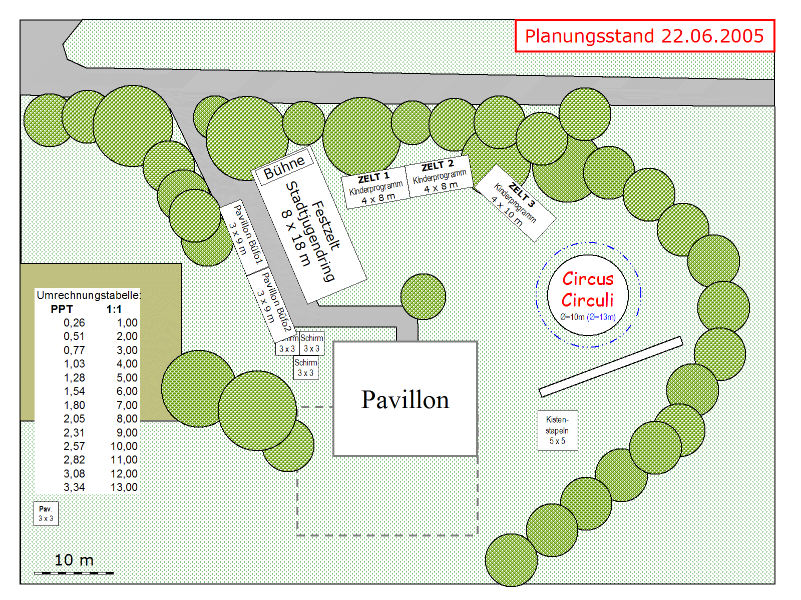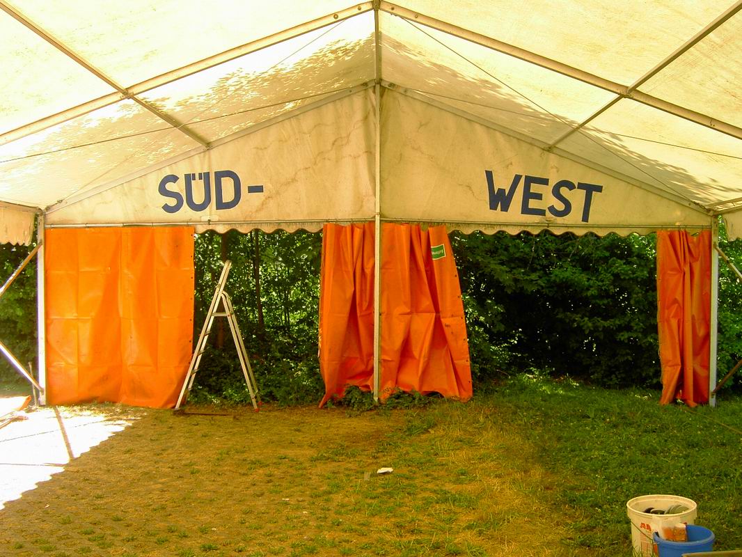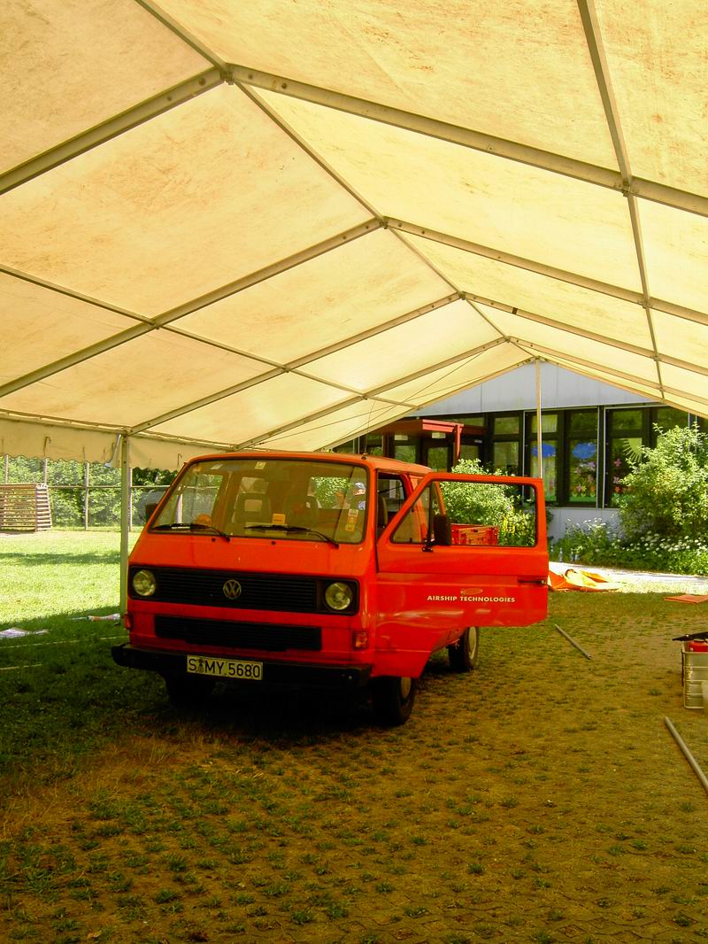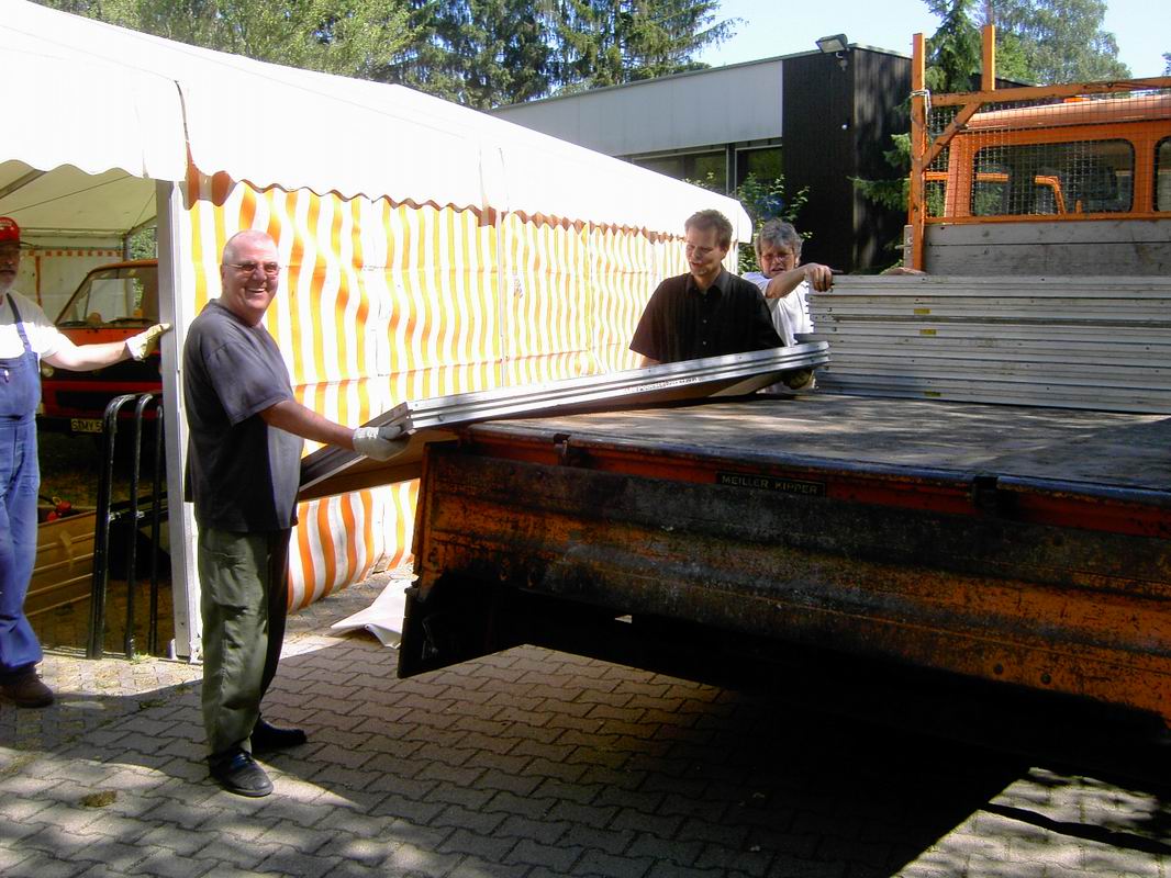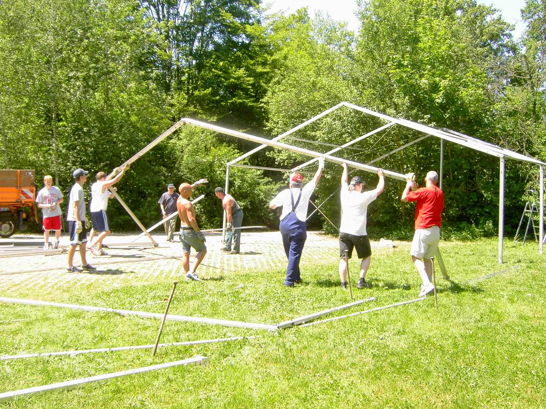 Am 22. April hatten wir uns das erste Mal getroffen, um das LAUCHFEST 2005 vorzubereiten. Nach zwei weiteren Treffen am 19. Mai und am 8. Juni war es dann am  Mittwoch dem 22. Juni soweit. Klaus und ich holten mit Frieder Hirt die Musikanlage vom MV Gaisburg ab. Es war Frieders Verdienst, dass wir diese Anlage kostenfrei zur Verfügung gestellt bekamen. Frieder fuhr dann mit dem Bully wieder nach Vaihingen zurück und Klaus und ich machten uns auf den Weg nach Faurndau. Vom dortigen Fußballverein bekommen wir Dank Ela Fürstenau vom Hort in der Stiftswaldstraße die drei Zelte fürs Kinderprogramm zu sehr günstigen Konditionen. Wo und wie das alles stehen soll, seht ihr auf dem Lageplan.