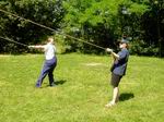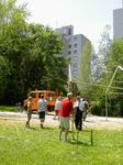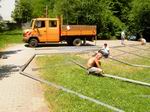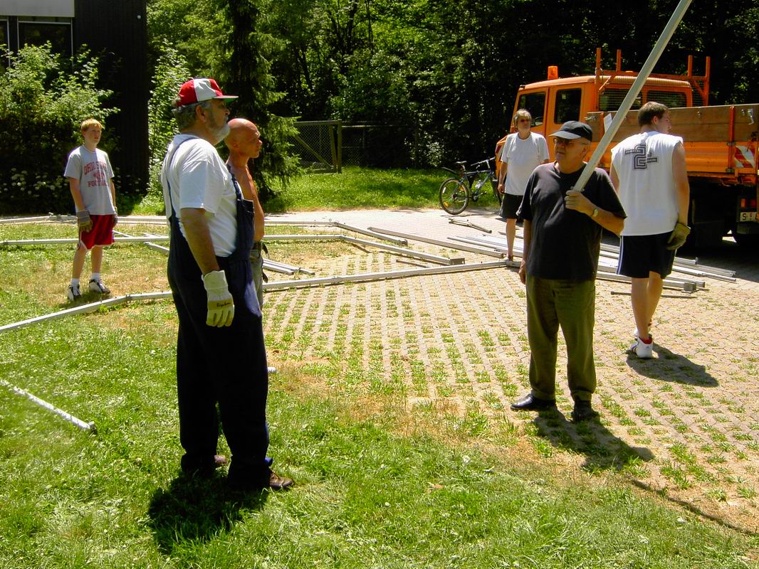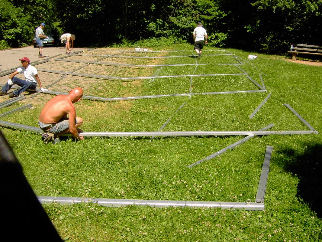 Mit weiteren Helfern der IBC beginnen wir mit dem Auslegen der Stangen ... ... für das sturmfeste große Zelt, das wir im letzten Jahr schon ... ... mit aufgebaut hatten und so die Handgriffe noch gut drauf hatten.