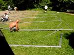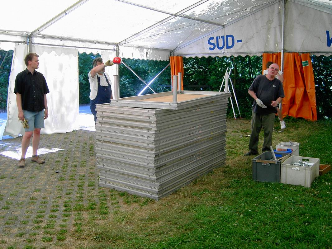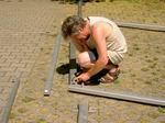 Um halb eins rief uns dann Rita Wunsch zum Vespern.  Nach dem Genuss von köstlichen Maultaschen ging es weiter. Die Rahmen der einzelnen Felder werden aufgestellt und ...