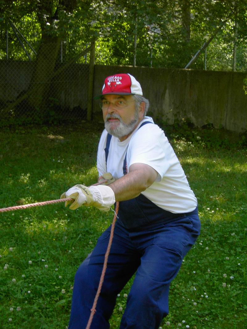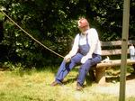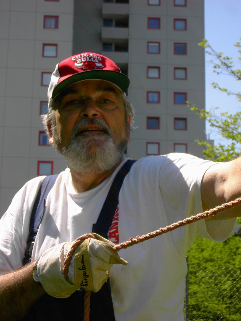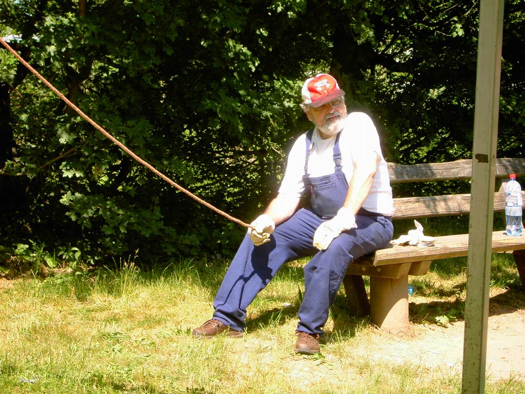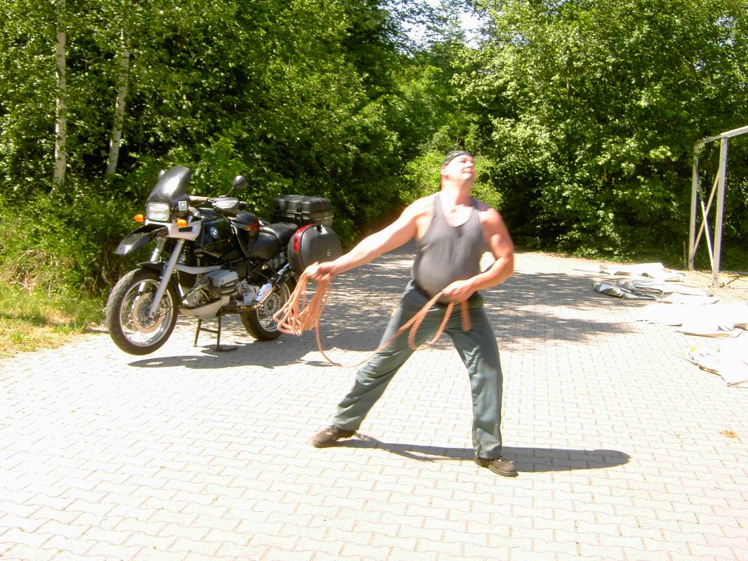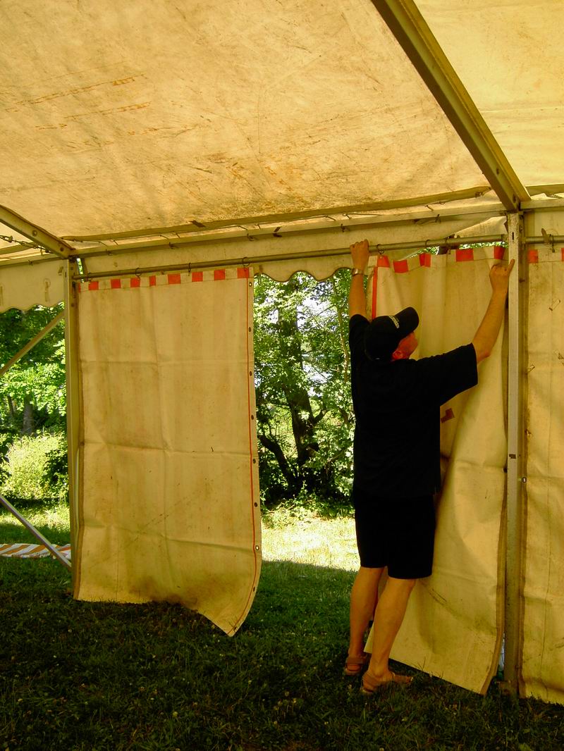 Die Seitenwände werden eingehängt. Frieder am Lasso. A alder Segler ko des au! Ha, jetz had's doch ed ganz nom glangt.