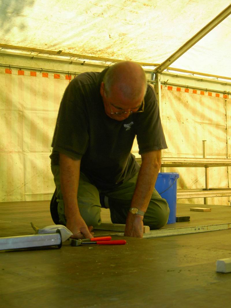Hans-Rüdiger Wolff leitet wie immer den Bühnenaufbau. Und wieder ein Segment reingezittert.