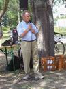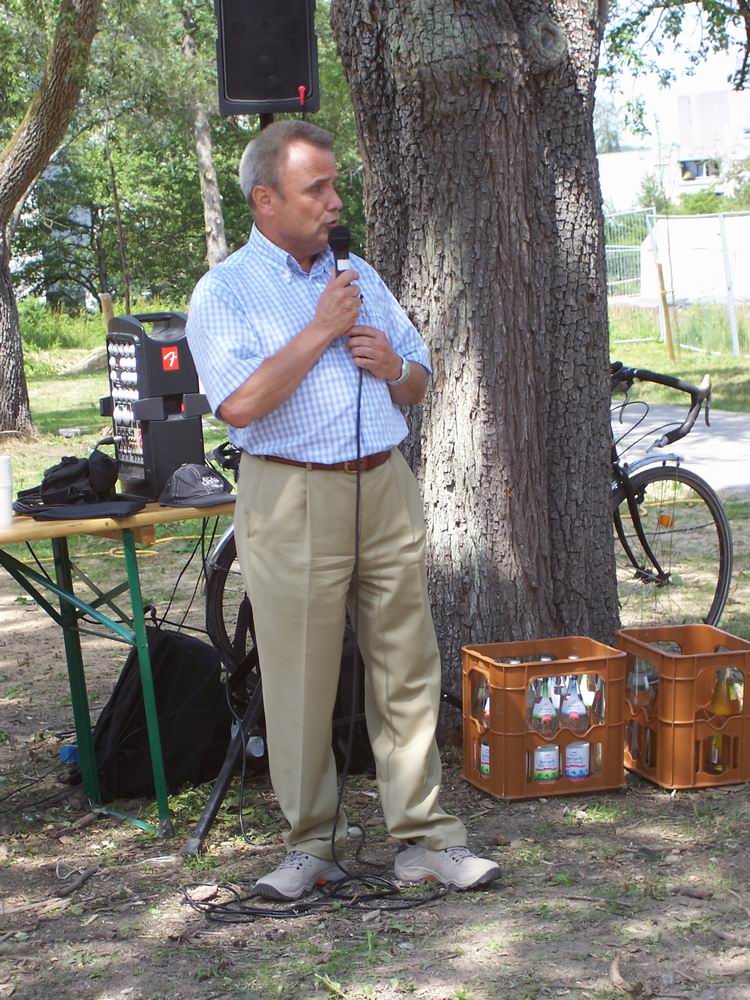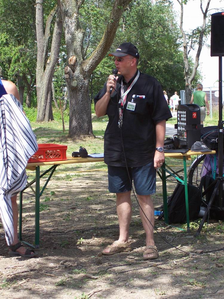 Steffen Kahl weist auf das nebenan stattfindende LAUCHKICKFESTIVAL