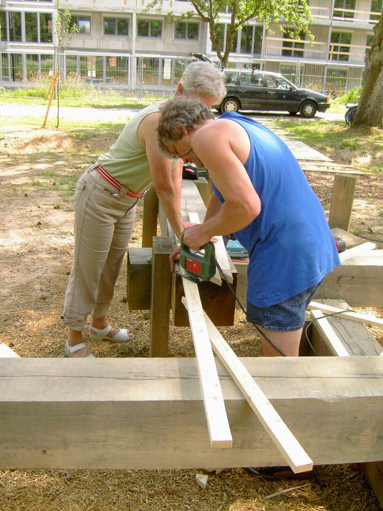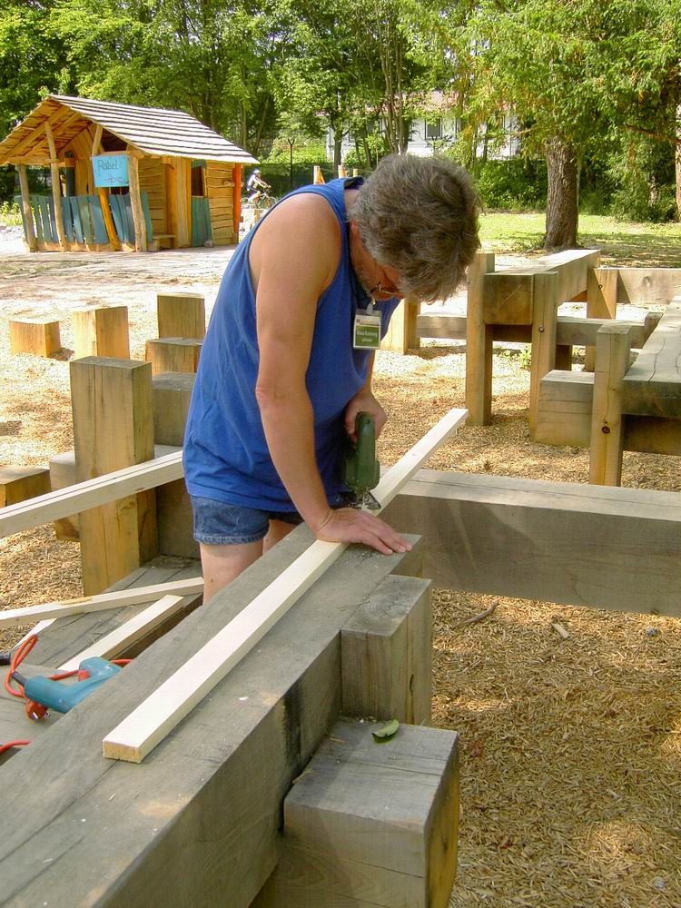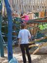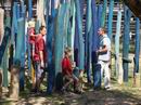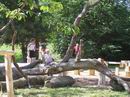 über die Stämme, Balken und Pfosten balanciert werden. Da