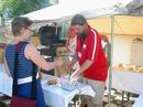 diesem Stand gab es die Gutscheine und die Getränke. |