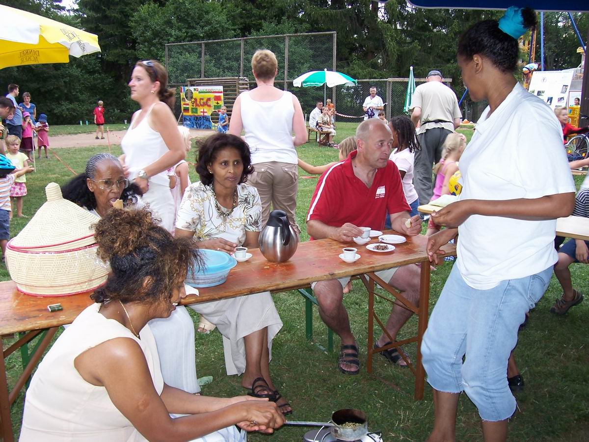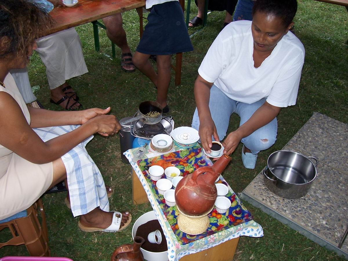 Der eritreische Kulturverein bietet ... ... leckeren echten eritreischen Kaffee an. Ein schattiger Treffpunkt inmitten der Festwiese.