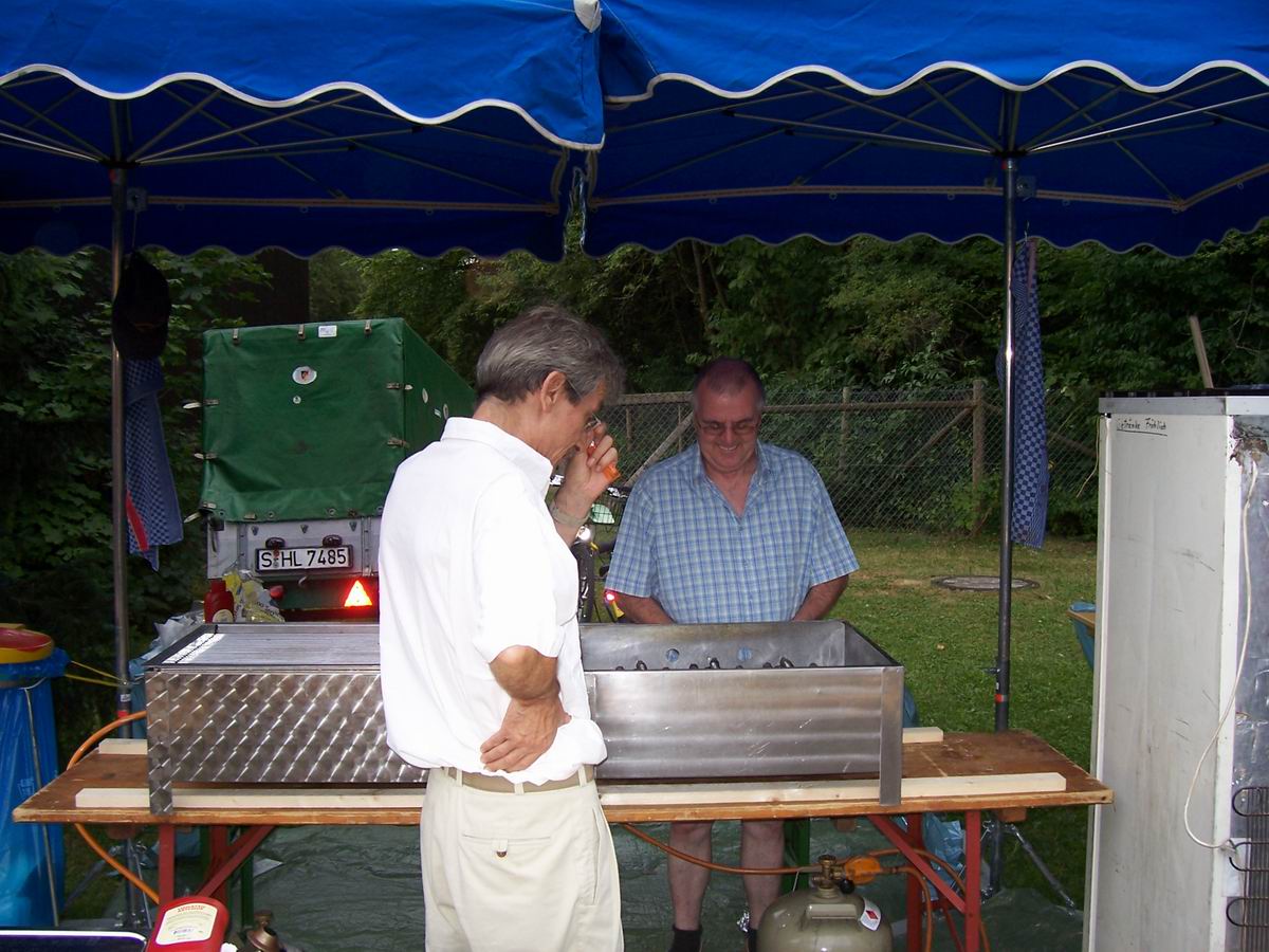 Die Kuchen- und Salattheke ... .. der Hans am Grill. An der Salattheke.