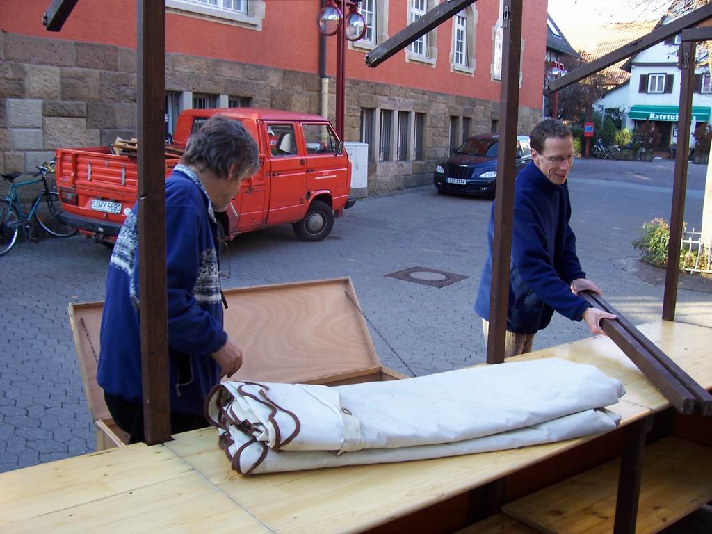 sodass der Aufbau zu Fünft schnell vonstatten geht.