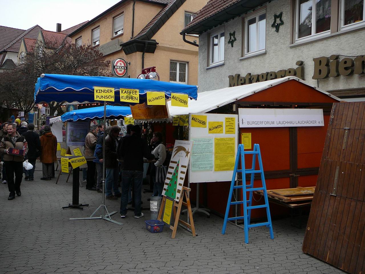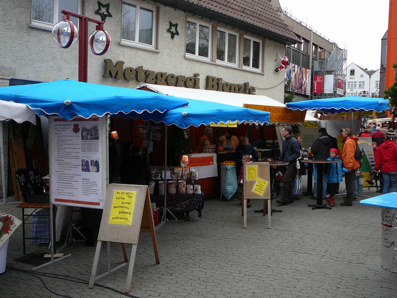 Vaihinger Weihnachtsmarkt. Am Stand geht es gleich los mit