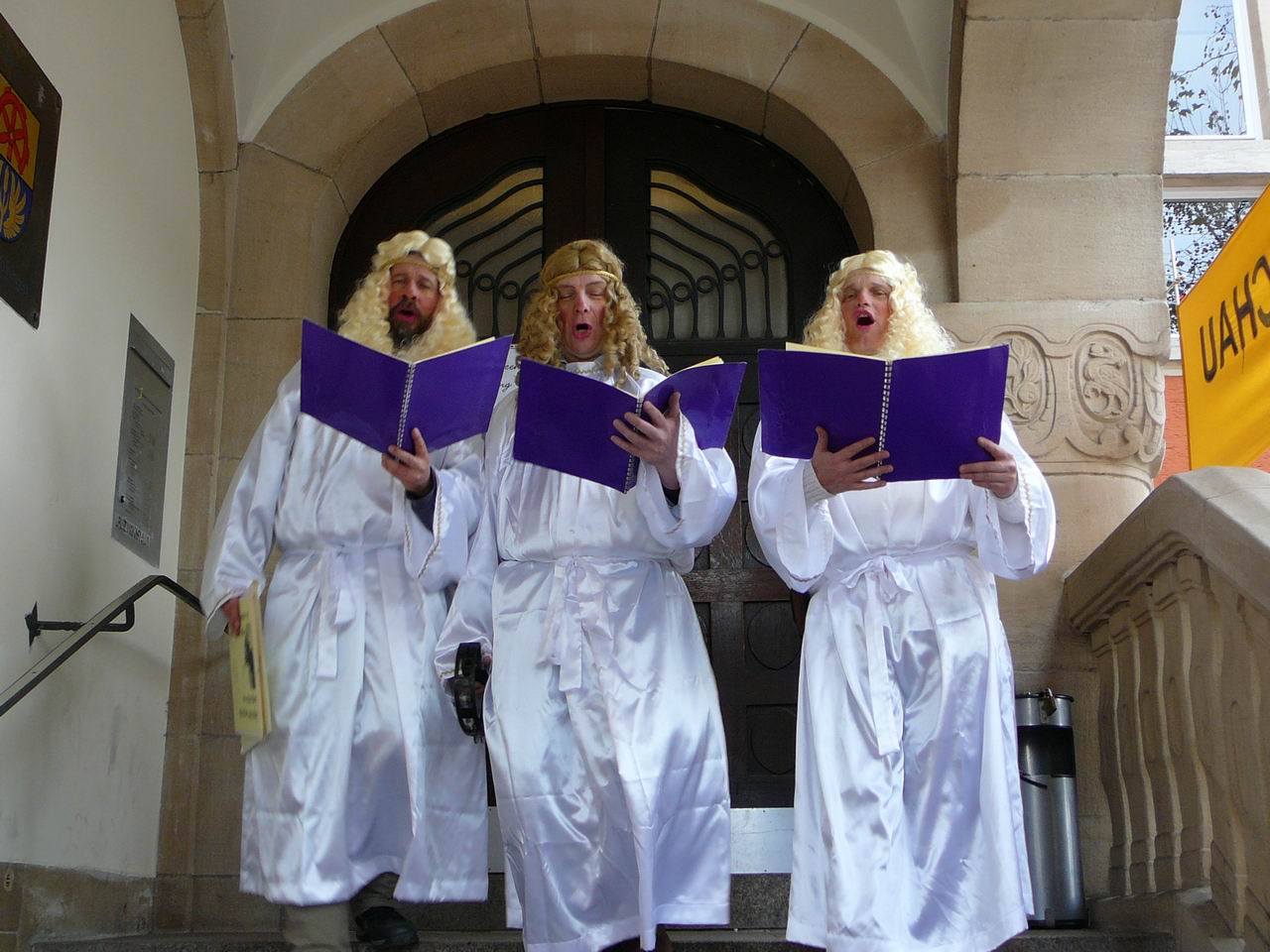 glänzenden Gewändern singen die vier Engel mit weiterer