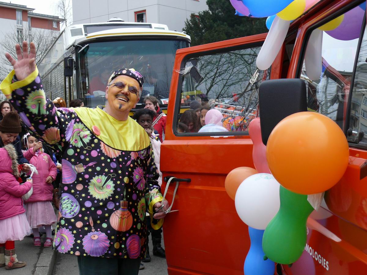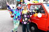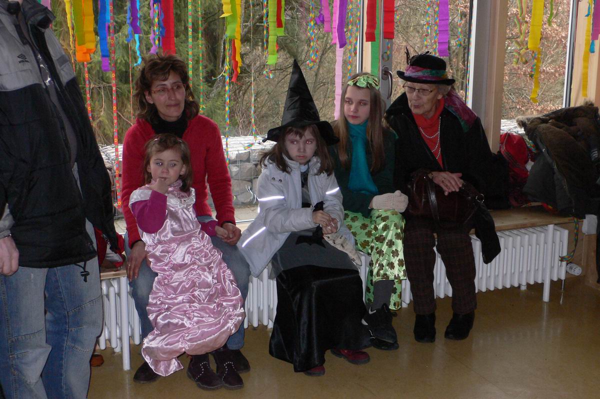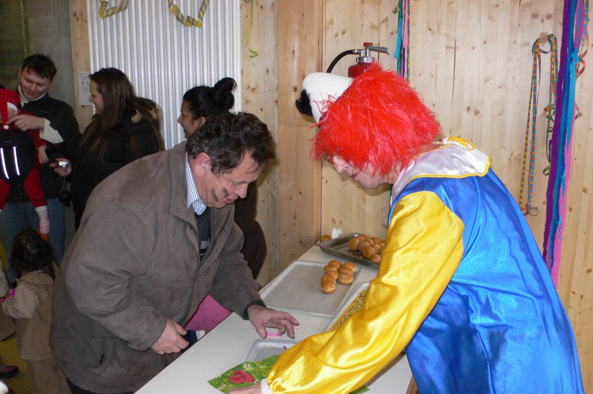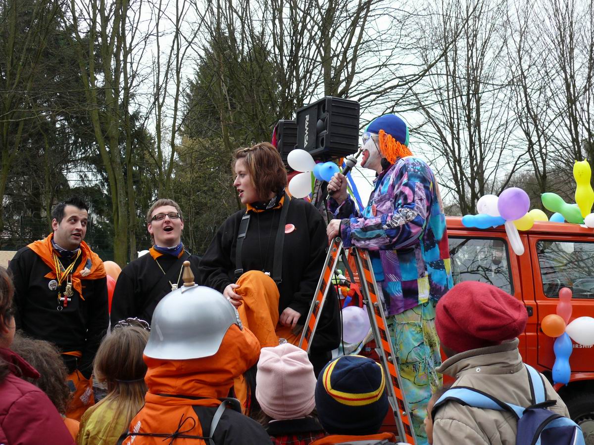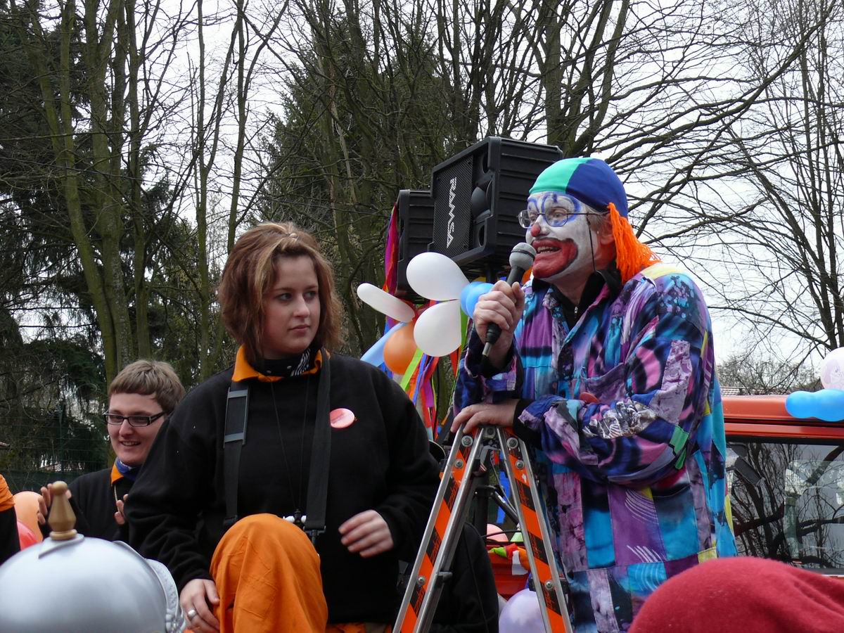 Die beiden Clowns Klaus und Hans haben den BULLY geschmückt und freuen sich auf den Rosenmontagsumzug. Die drei Feen im Kuchenreich: Rita, Frau Schlaich und Rebecca. Auch der "Umzugswagen" der Vaihinger Polizei steht schon bereit, um den Umzug zu sichern.