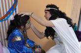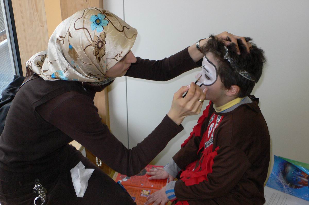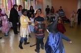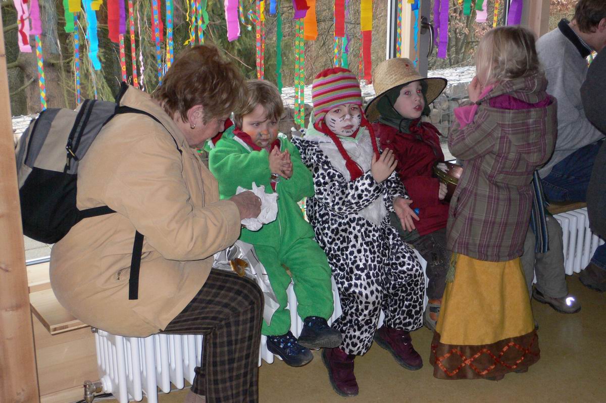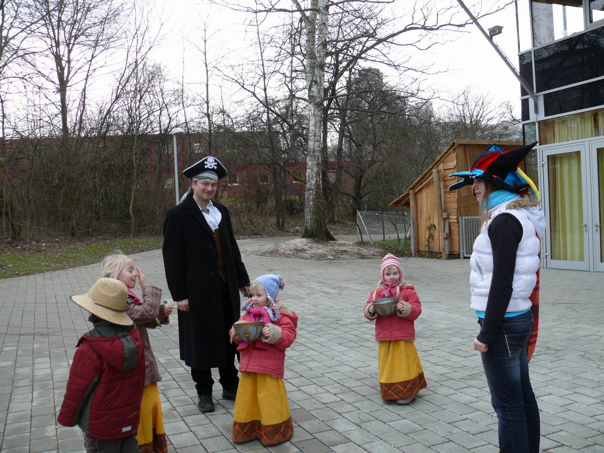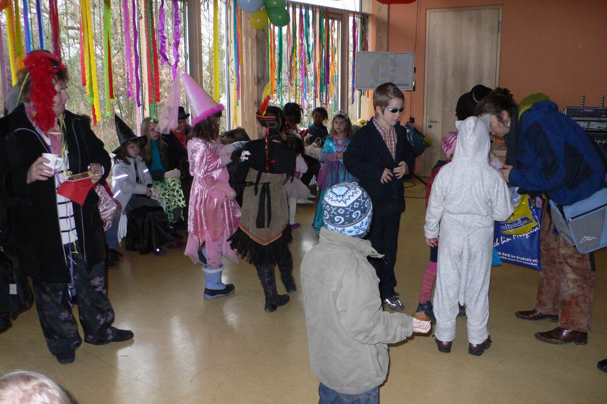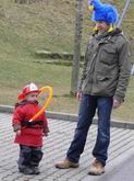 Viele bunte Kostüme ...  ... bei fetziger Musik. Da lacht auch der Papa.