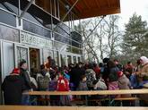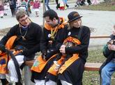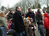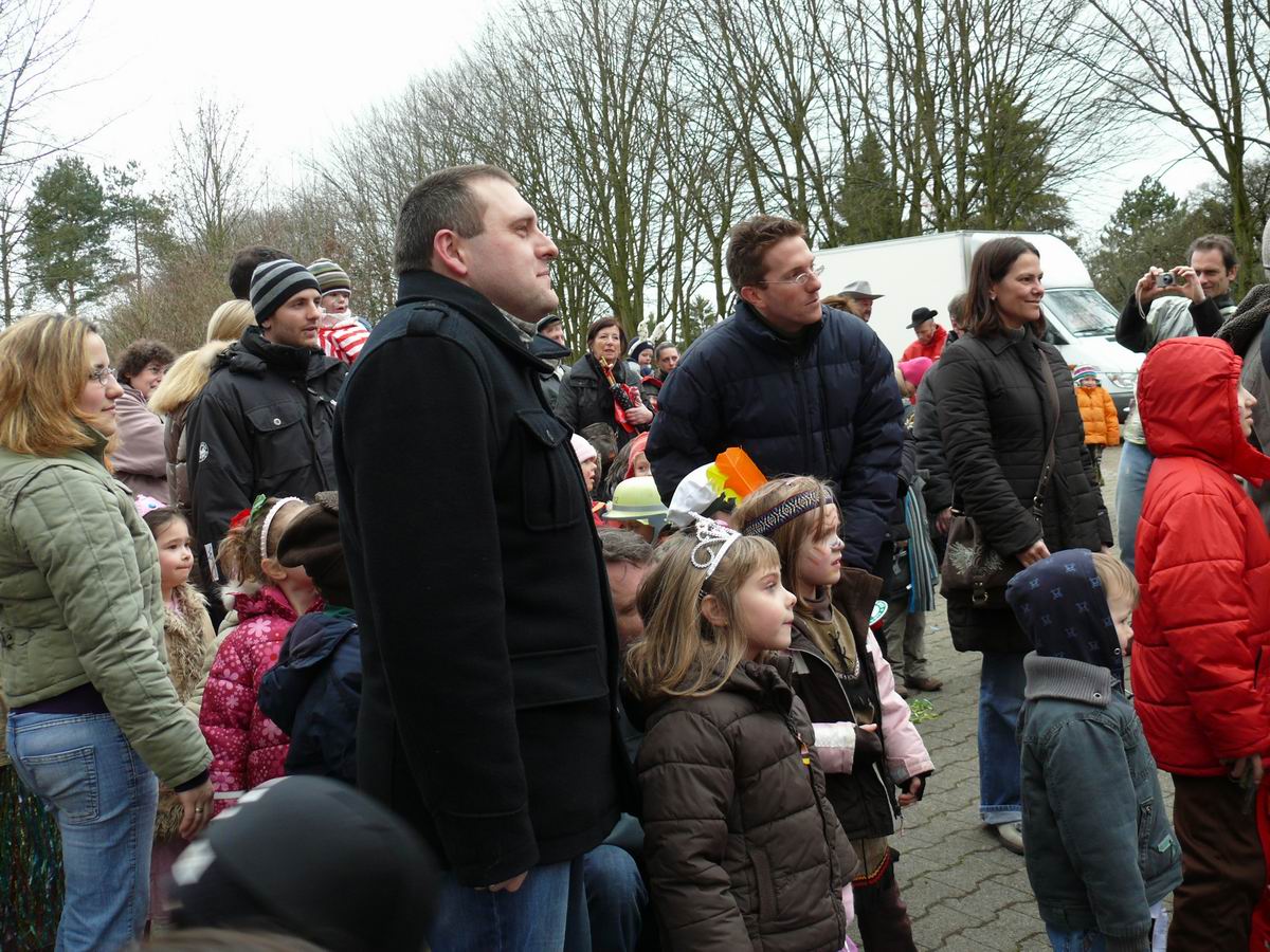 Auf dem Treffpunkt, dem großen Parkplatz beim Spielberg im Lauchhau ...  ... wird schon die  Stimmung eingeheizt. Viele große und kleine Narren haben sich dort eingefunden.