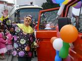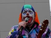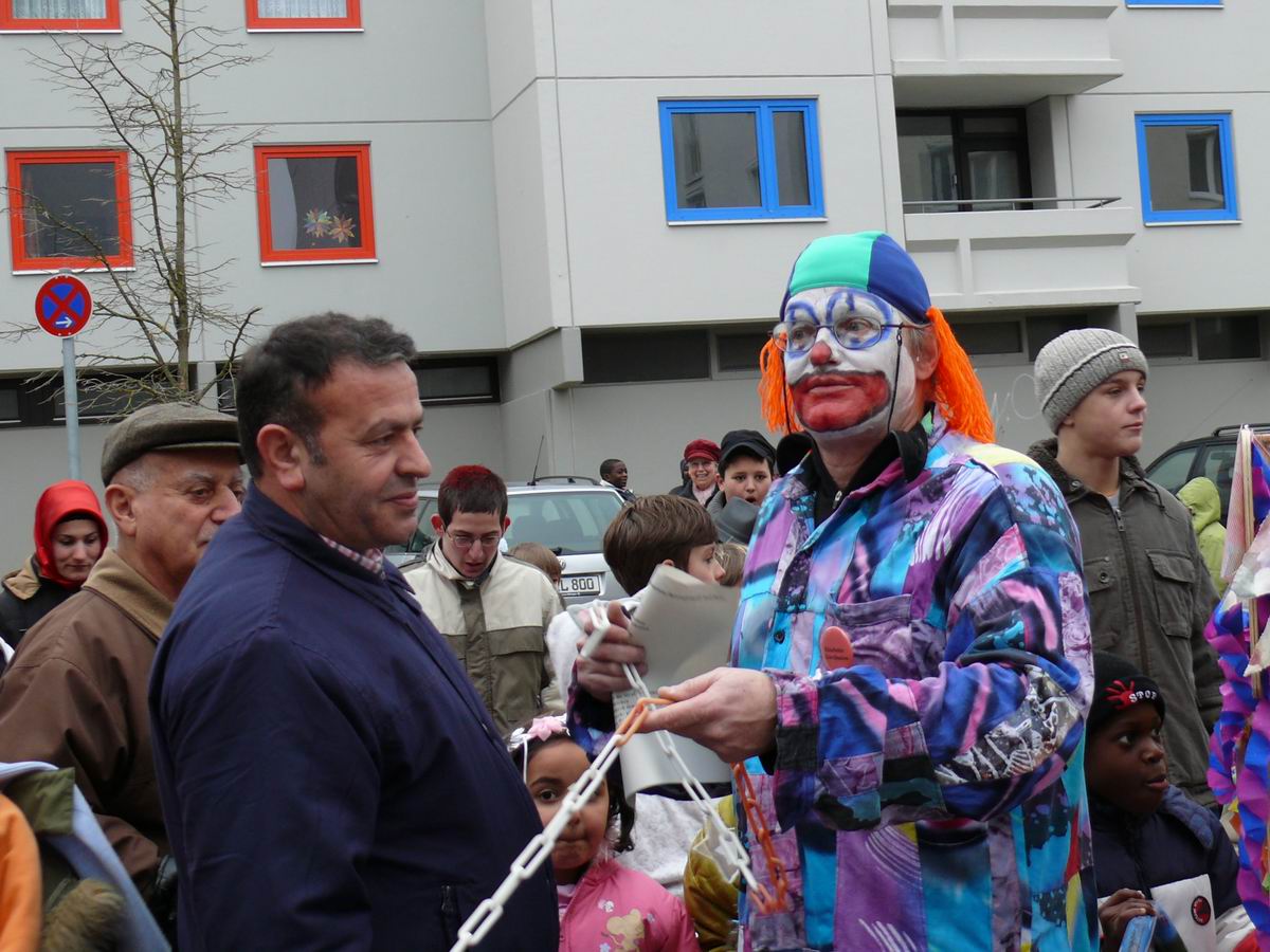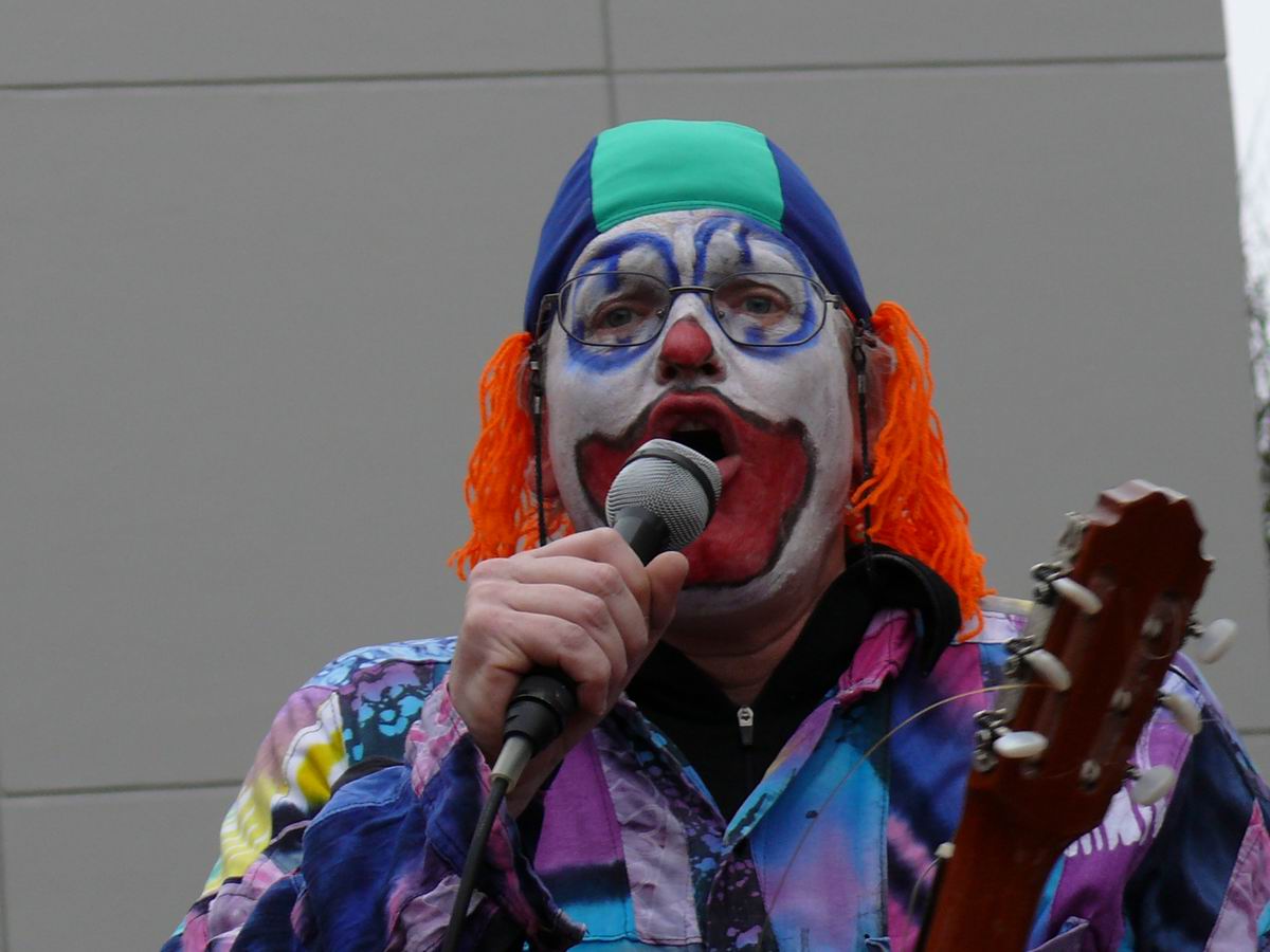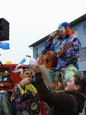 Da bunte, laute Völkchen ... ... zieht seinem "berittenen"  ... Clown hinterher.