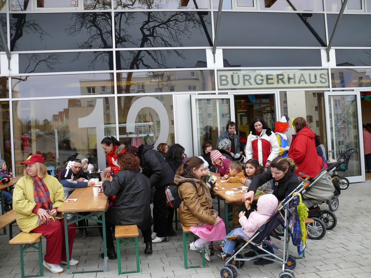 Der fünfte Kinderfaschingsumzug wurde von der neuen Mitarbeiterin der Jugend- und sozialen Stadtteilarbeit in Lauchhau-Lauchäcker Rebecca Sickinger mit Unterstützung Ihrer Vorgängerin Hanna Beyß in Kooperation mit den im Wohngebiet engagierten Einrichtungen  gemeinsam organisiert und durchgeführt: