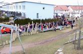 Der Umzug läuft ... ... in Richtung ...  ... Büsnauer Straße weiter.