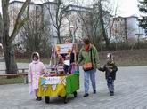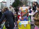 Bevor der Zug nochmals die Meluner Straße ... ... quert, gibt es nochmal eine Bombon-Station. Und dann gehts ab ins Bürgerhaus zur Party!