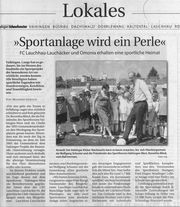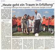 Der Oberbürgermeister ist eingetroffen und die Festgemeinde zieht auf das große Kunstrasenfeld um.