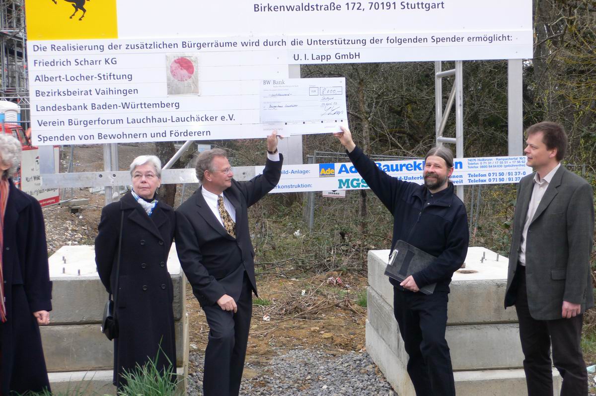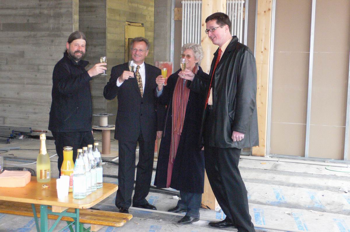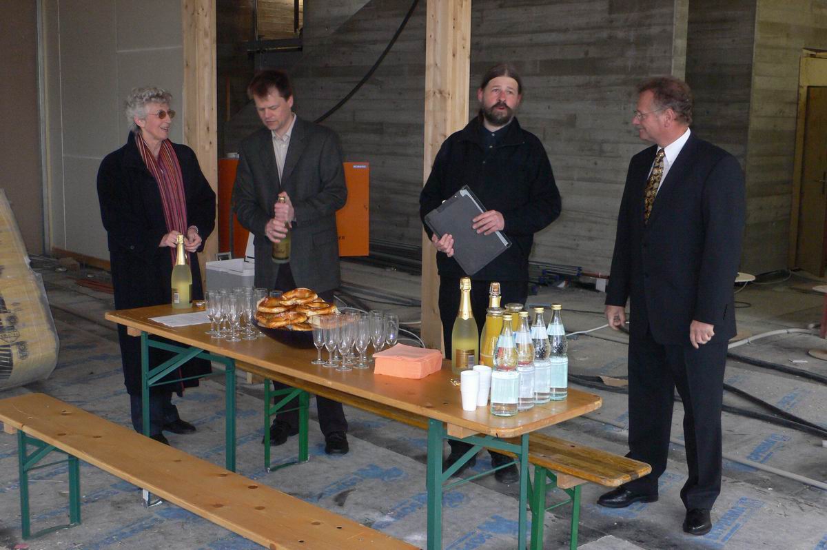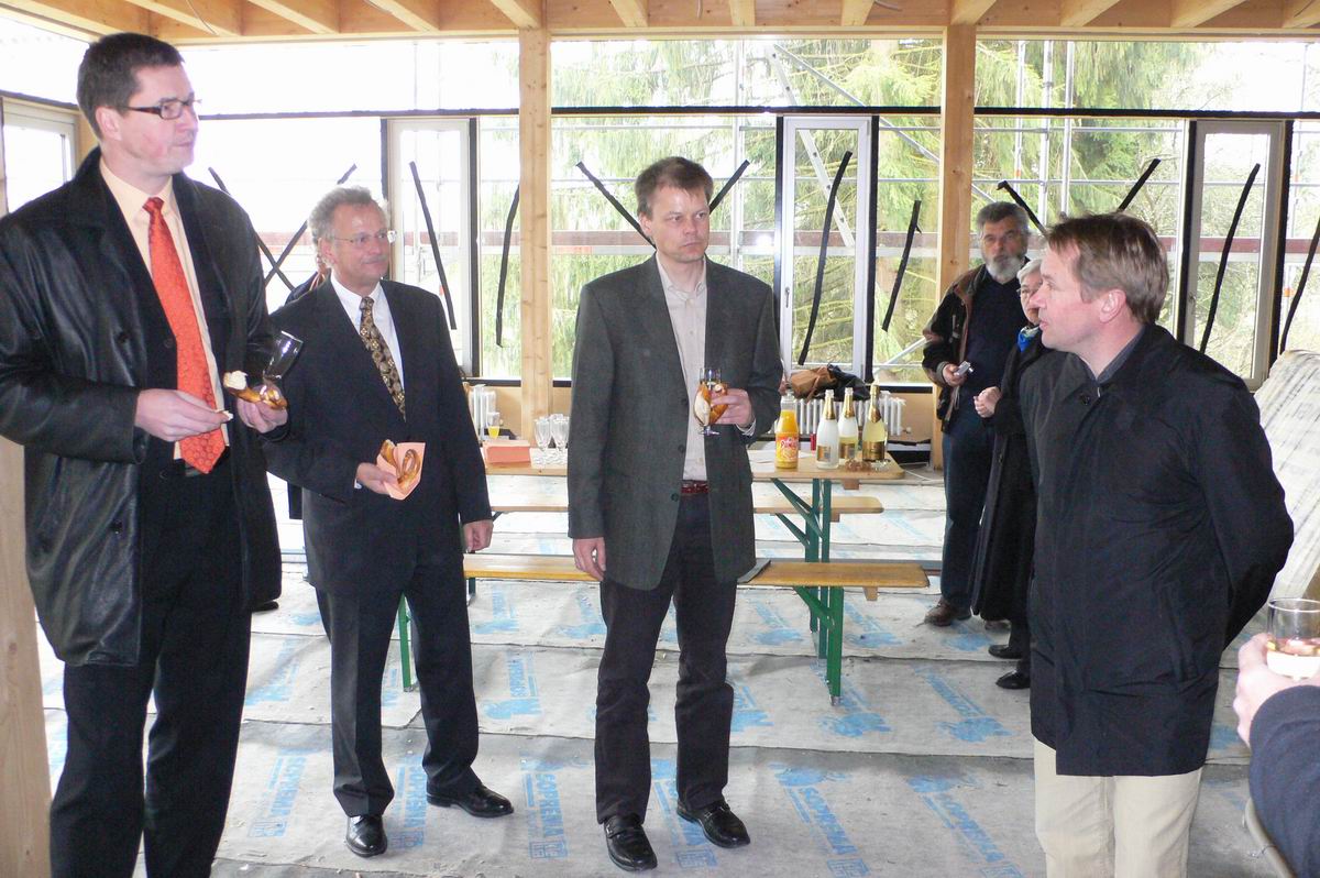Herr Hofmann vom Hochbauamt, der Bauherr, unterhält sich angeregt mit Spendern und Vorständen des Büprerforums.