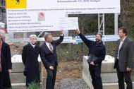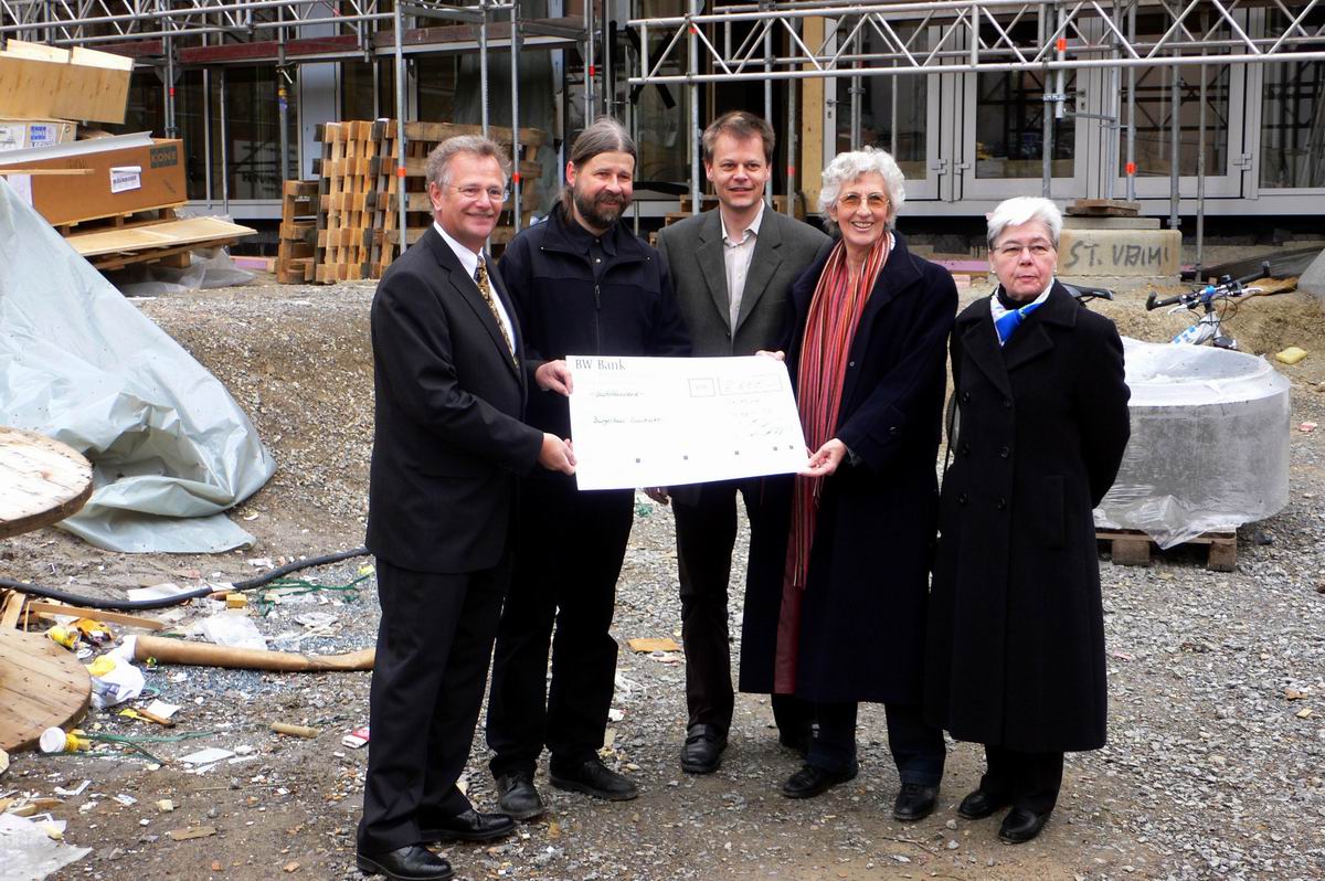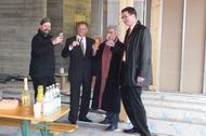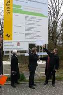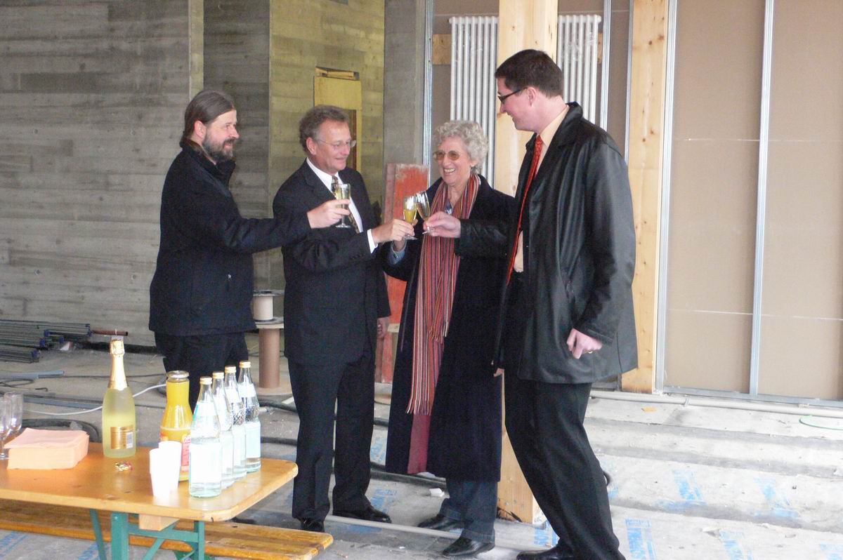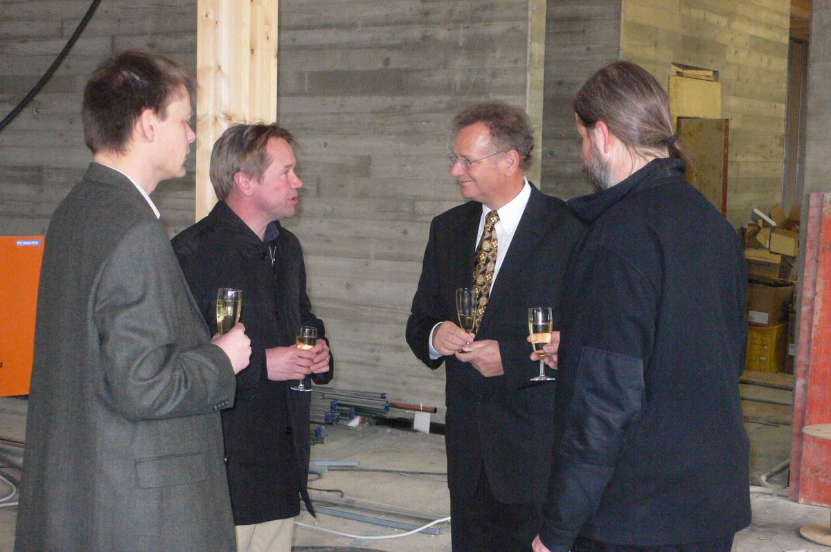 Herr Hofmann vom Hochbauamt, der Bauherr, unterhält sich angeregt mit Spendern und Vorständen des Büprerforums.