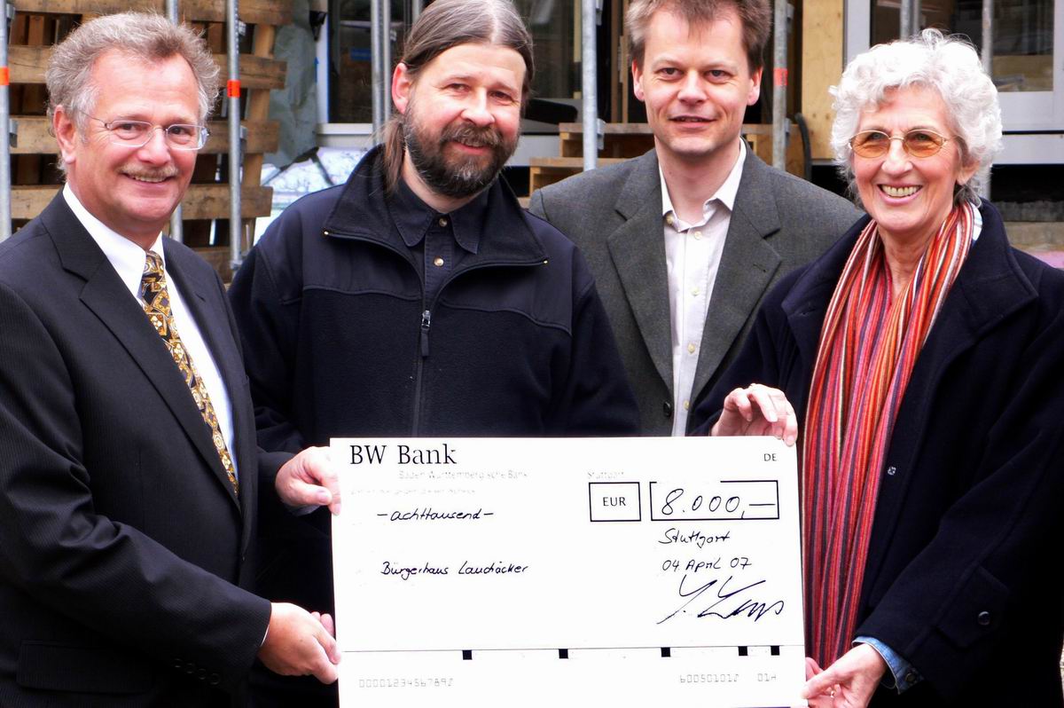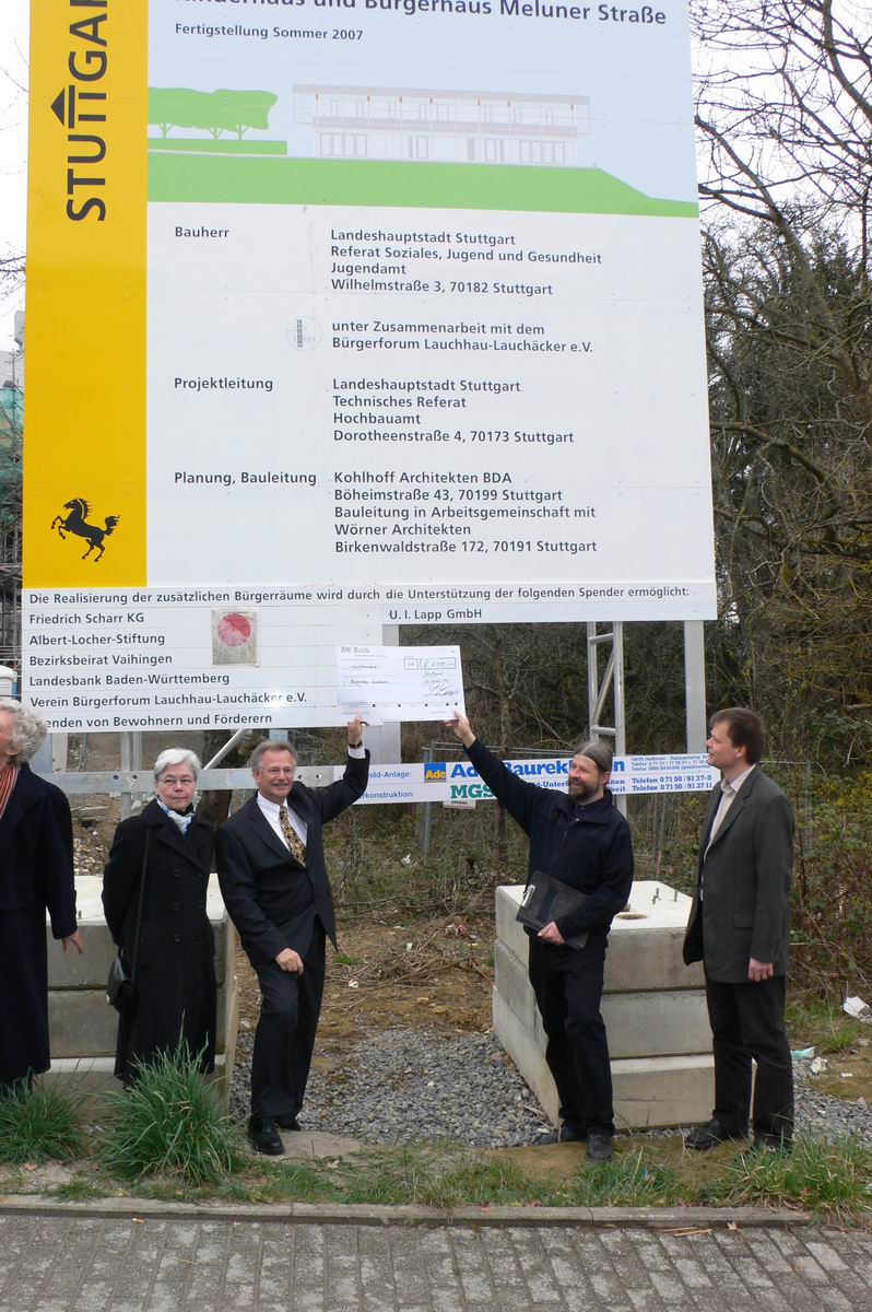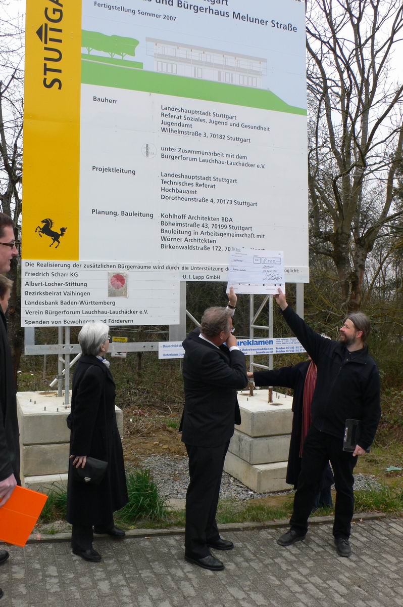 Übergabe des Spendenschecks der Firma U.I.Lapp über 8.000 € am 4. April 2007