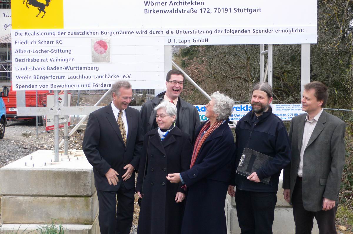 Auf dem Vorplatz des Bürgerhauses versammeln wir uns zum Pressebild mit Herrn Lapp.