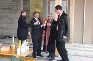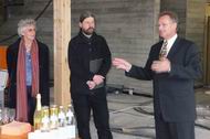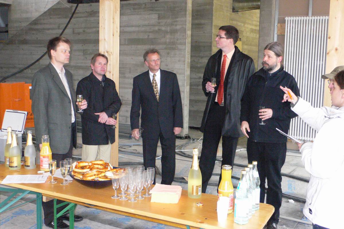 Nach dem posieren für die Pressebilder versammeln wir uns im "Saal" zu Sekt und Brezeln.